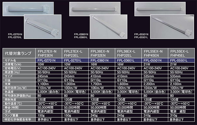 LED照明FPL蛍光灯タイプ。工事代が安く、ノイズ対策がされ、消費電力が低く明るいのが特徴です。